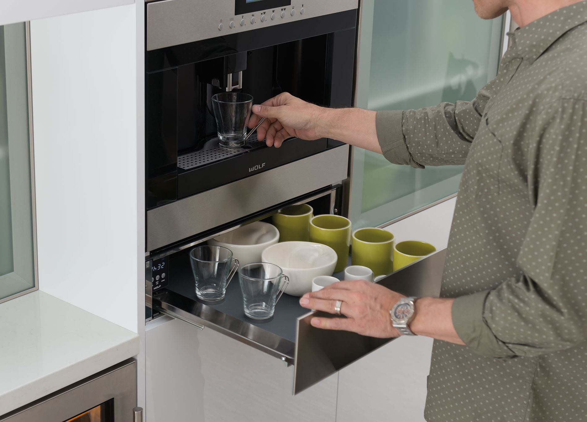 Bringing barista-quality coffee to the home, the Wolf coffee system is an easy-to-use, easy-to-clean appliance delivering fresh, smooth coffee at the push of a button.